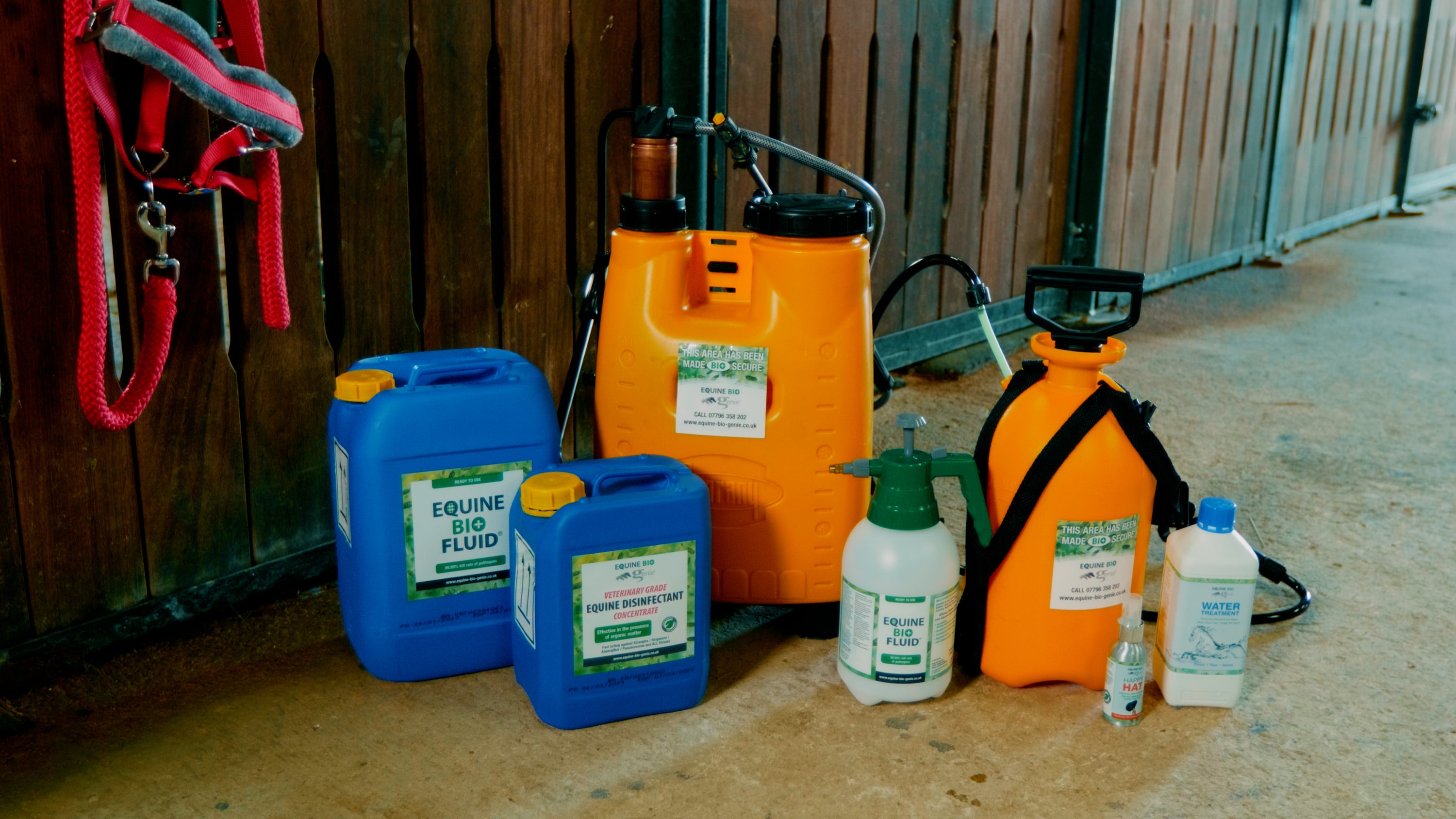 A selection of concentrate and ready to use products for use in ALL areas of the Equine environment, from Hooves / Rugs / Walls / Floors / Washing machines / Fogging / soaking and dippingbridles - 360 degree Biosecurity covered